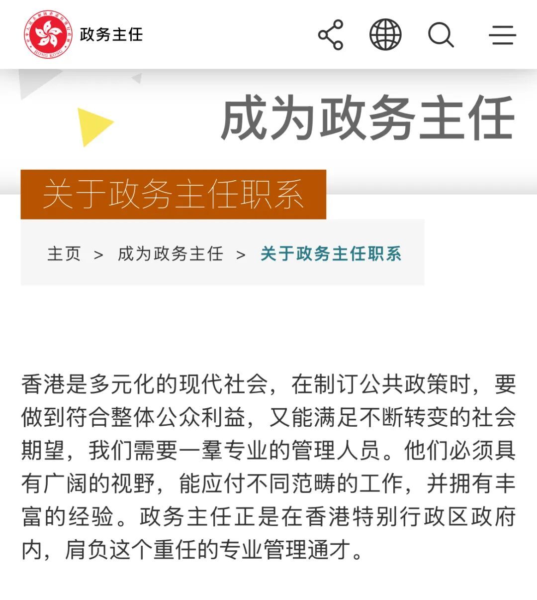在实际的录取画像中,这群人的履历依然亮眼。翻看历届年轻政务主任的履历:有人拿的是加利福尼亚大学洛杉矶分校的人类学学位;有人毕业于剑桥大学经济系,读书时曾在政务司司长私人办公室辖下政策及项目统筹处实习;还有人是港大本科、剑桥硕士,在私人机构磨练了两年多才考入政府。